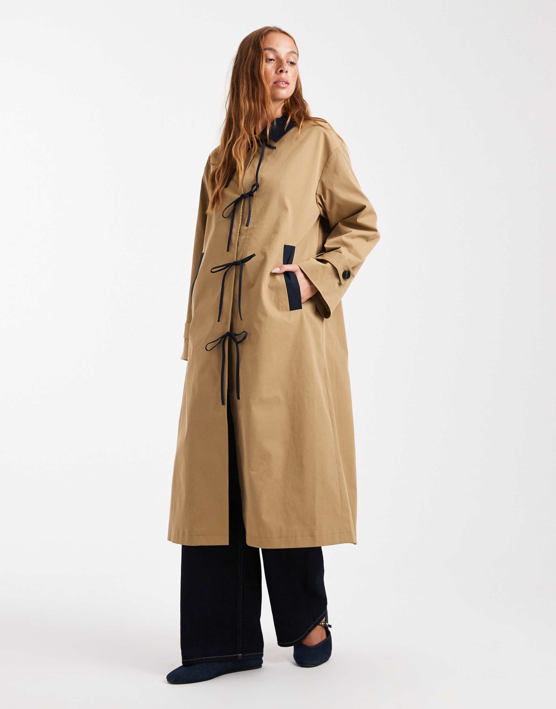 ONLY BOW DETAILS TRENCH COAT IN LIGHT BROWN
