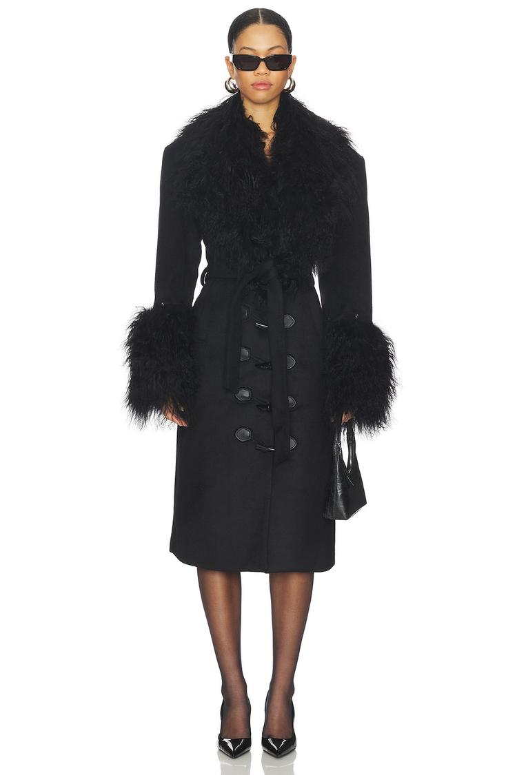 luxury wool coat with lamb fur