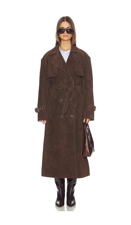 OW COLLECTION ZADE TRENCH COAT IN BROWN.
