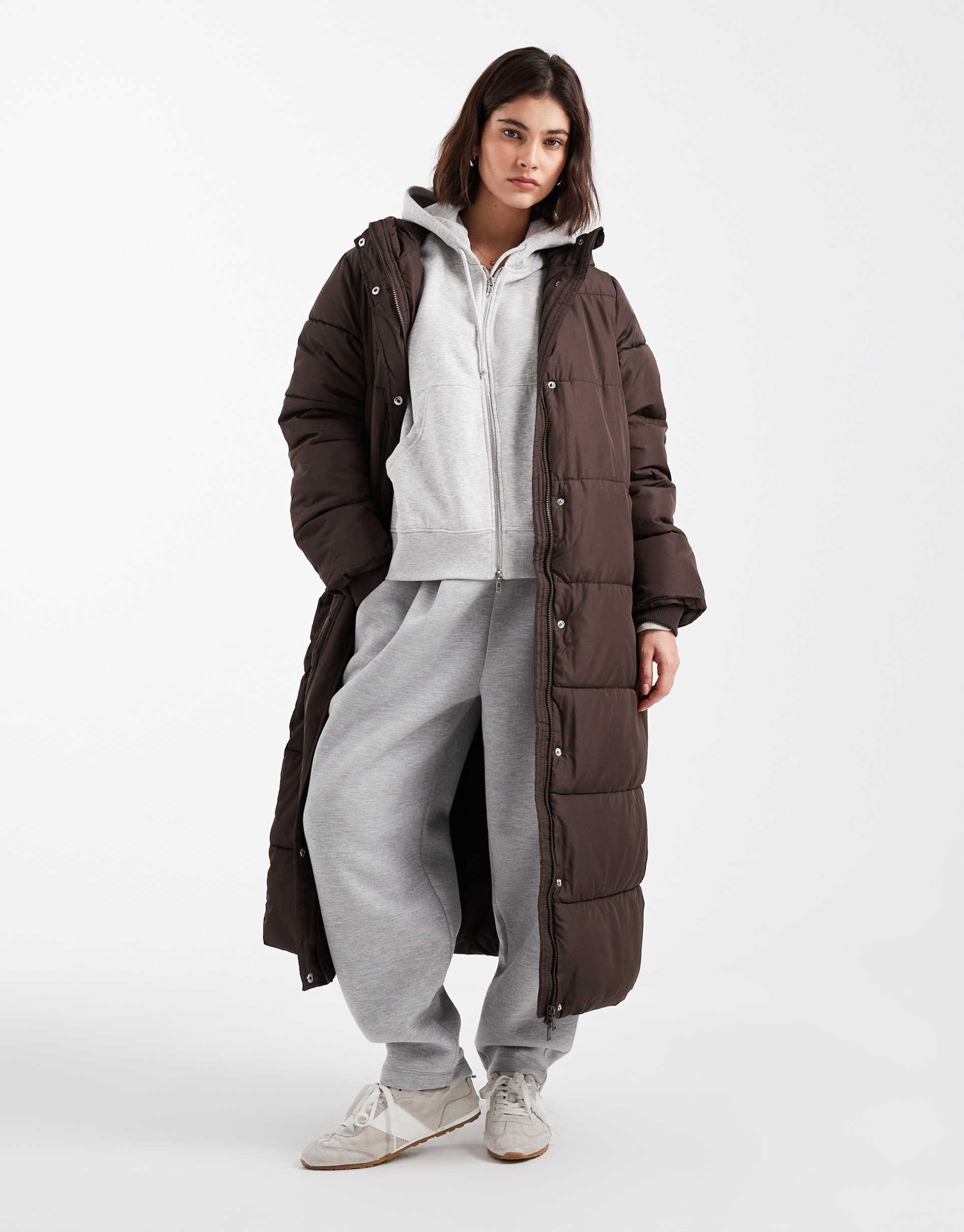 PIECES HOODED PADDED MAXI COAT IN CHOCOLATE BROWN
