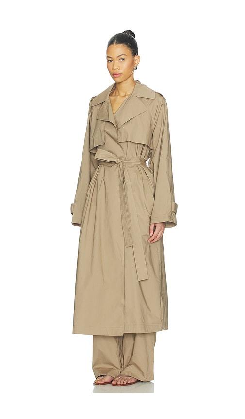 SKIMS SWISS COTTON SATEEN TRENCH COAT IN BROWN.