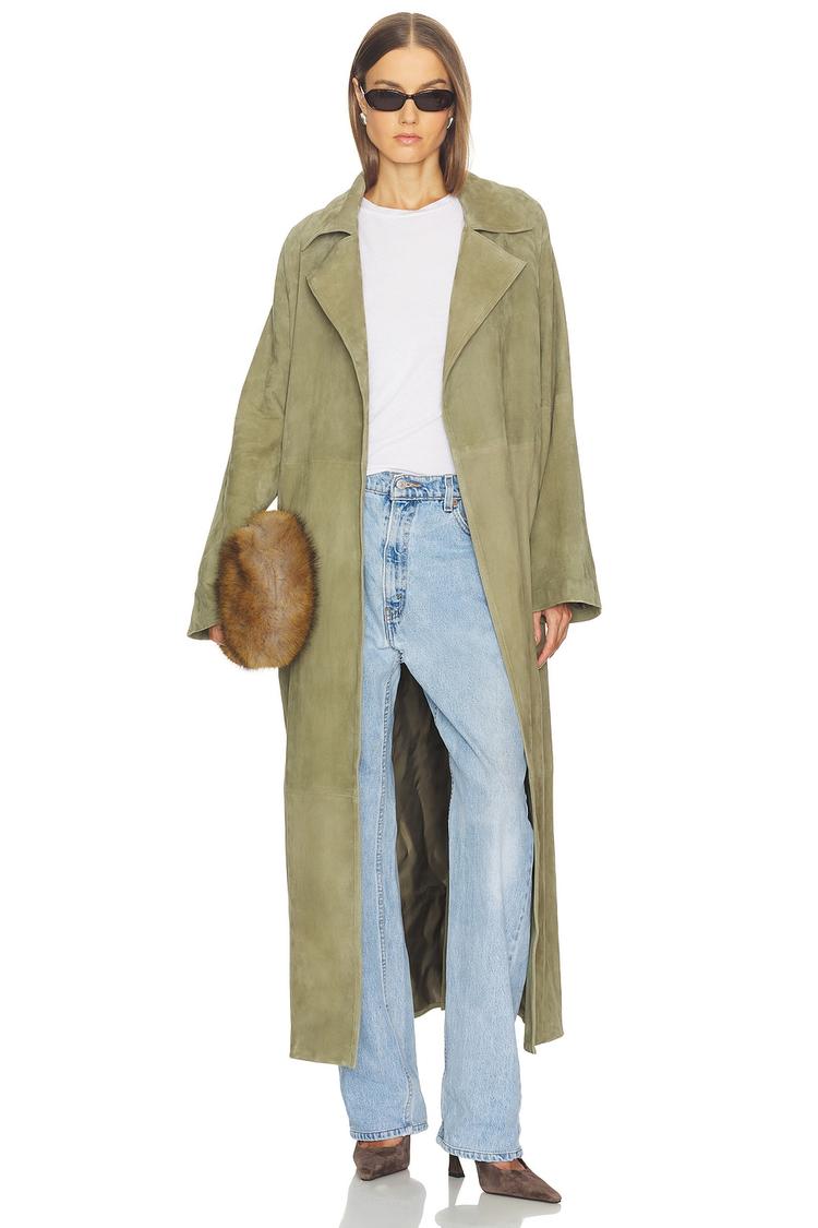 relaxed fit suede trench coat