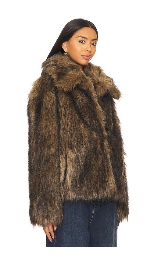 SUPERDOWN KENNEDY FAUX FUR COAT IN BROWN.