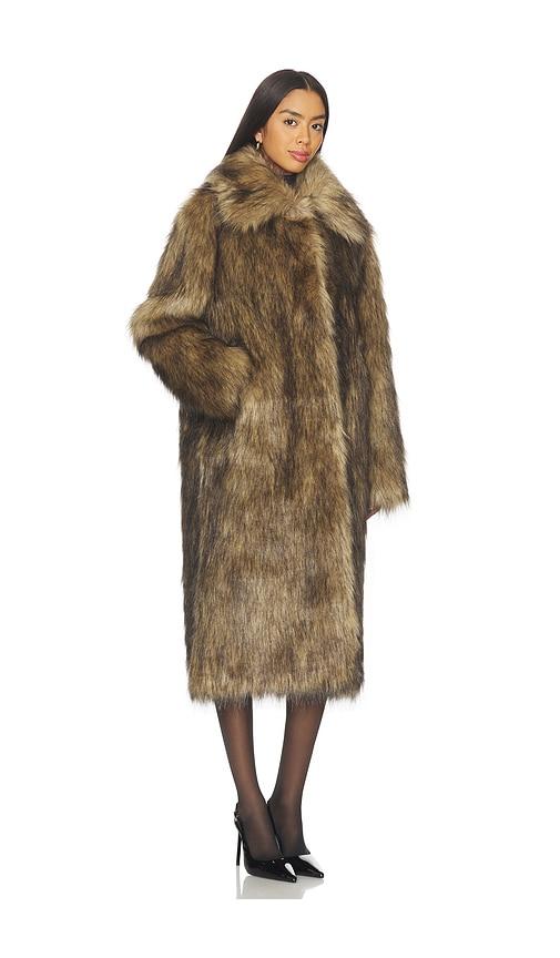 SUPERDOWN X EMMA LEGER CARMELA FAUX FUR COAT IN BROWN.