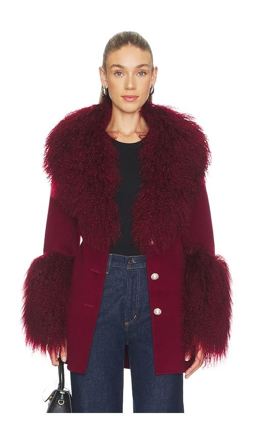 SUSANNA CHOW X REVOLVE MIMI CASHMERE SHEARLING COAT IN BURGUNDY.