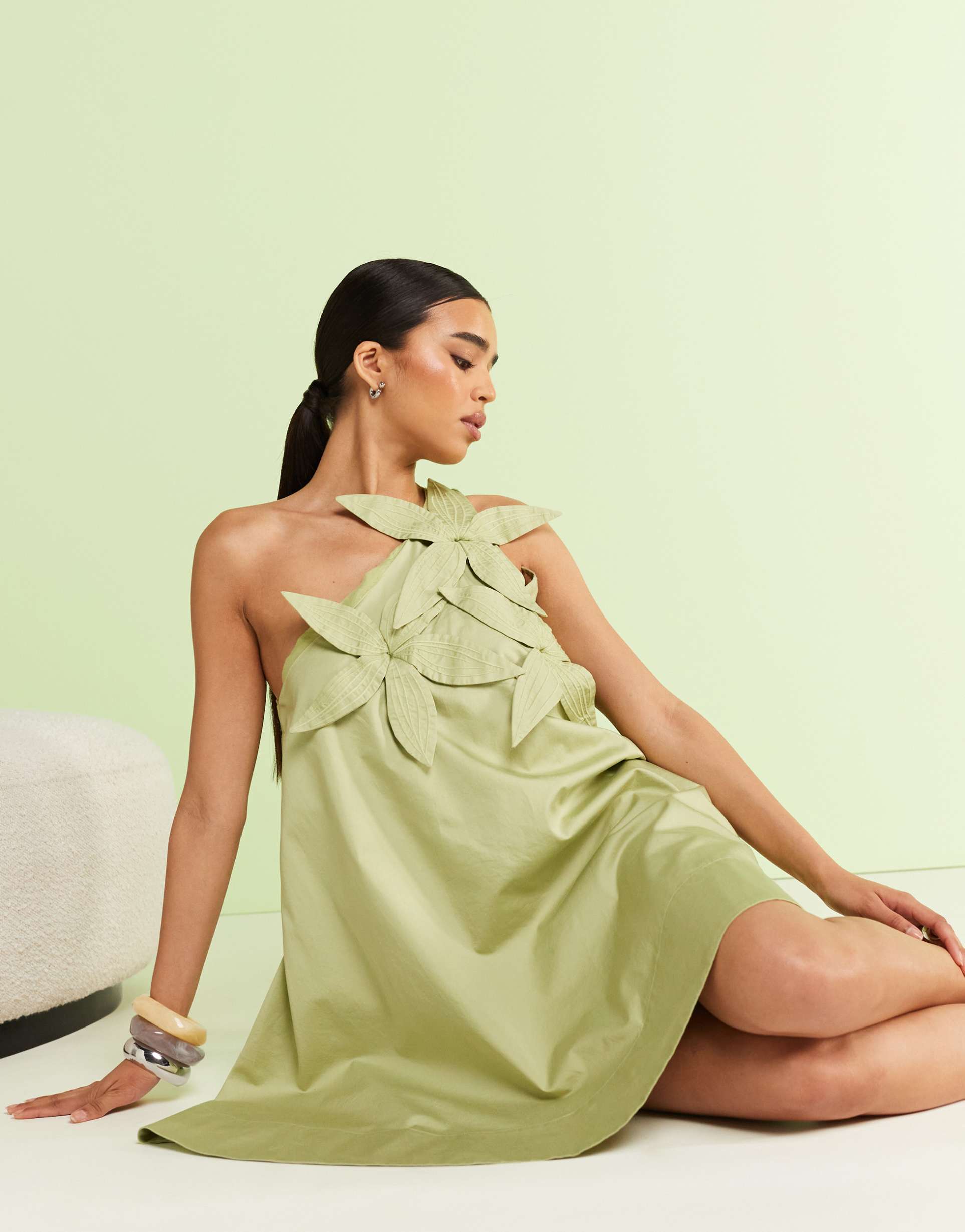 & OTHER STORIES ONE SHOULDER MINI DRESS WITH 3-D APPLIQUE FLOWERS
