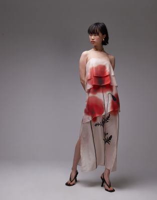 & OTHER STORIES SHEER CHIFFON MAXI DRESS WITH LAYERS WITH FLORAL PLACEMENT PRINT