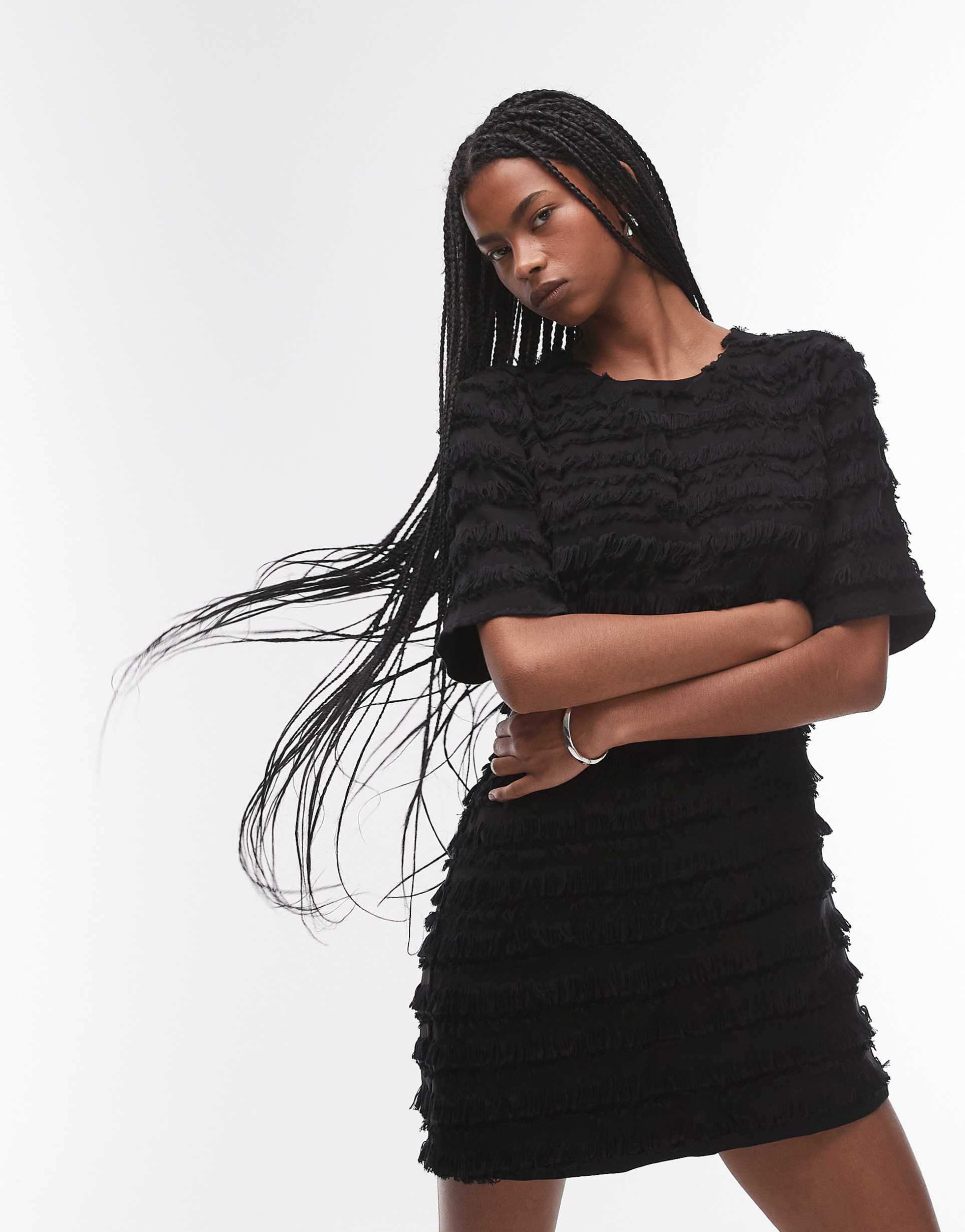 & OTHER STORIES MINI DRESS WITH ALL OVER FRINGING IN BLACK