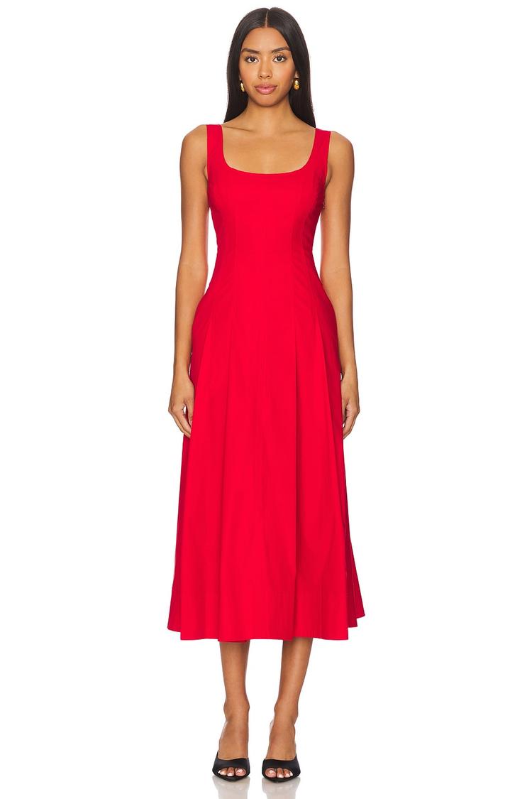 red midi dress