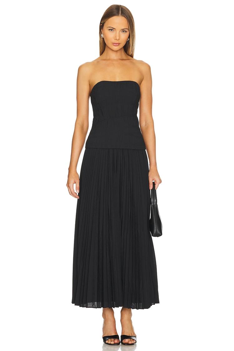 black strapless midi dress
