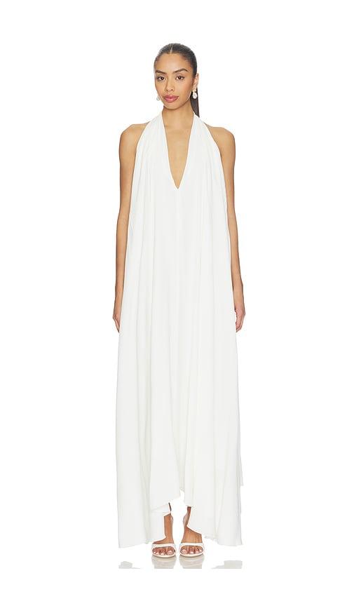 AEXAE DRAPE MAXI DRESS IN WHITE.