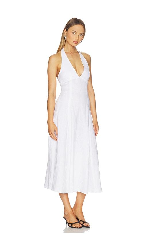AEXAE LINEN HALTER NECK MAXI DRESS IN WHITE.