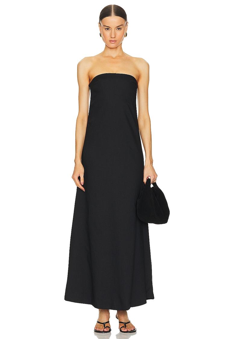 A sleek column maxi dress crafted from a midweight blend of linen and viscose offers a smooth, matte black silhouette that flows elegantly to the floor with a clean hemline. The strapless straight neckline and sleeveless design create a minimalist, slim fit that highlights the body’s natural shape. Featuring a hidden side zipper closure and double lining, this dress ensures both comfort and sophistication. Ideal for casual outings, brunches, or romantic date nights in spring, summer, and autumn, it’s a timeless staple that blends classic elegance with modern ease.