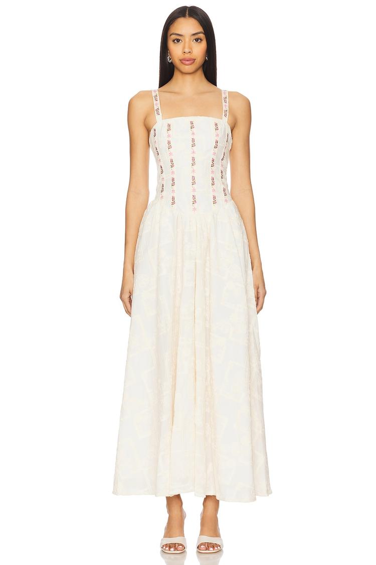 Soft cotton crepe and delicate embroidered floral details bring a timeless romantic vibe to this maxi dress. The square neckline with adjustable spaghetti straps complements the regular fit and A-line silhouette, creating an effortlessly elegant look. Fully lined with a hidden side zipper and side seam pockets, it balances style with practicality. Ideal for spring and summer occasions, this dress shines at brunches, outdoor events, and as a wedding guest outfit, offering both comfort and charm in one classic piece.