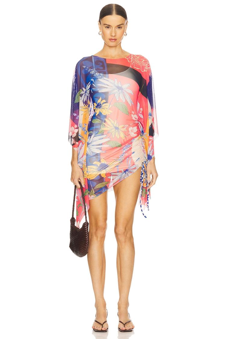 Vibrant florals bloom across a lightweight mesh shift silhouette, offering a playful yet sexy mini length perfect for spring and summer outings. The dress features an adjustable ruched front with self-tie closure, allowing a customizable fit that flatters the figure. Sleeveless with wide straps and a round neckline, it balances coverage and allure beautifully. Its sheer mesh fabric adds a breezy texture, making it ideal for brunch, date nights, or lively nights out. Crafted from a polyester-elastane blend, it ensures comfort and stretch in a bold, colorful print.