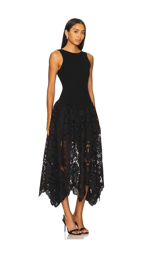 AJE ATLAS KNIT MIDI DRESS IN BLACK.