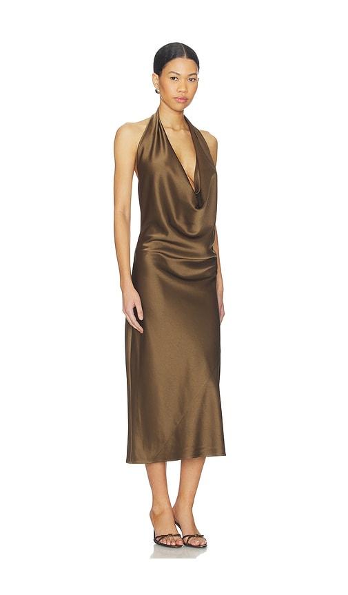 ALEJANDRA ALONSO ROJAS DRAPED HALTER DRESS IN DARK GREEN.