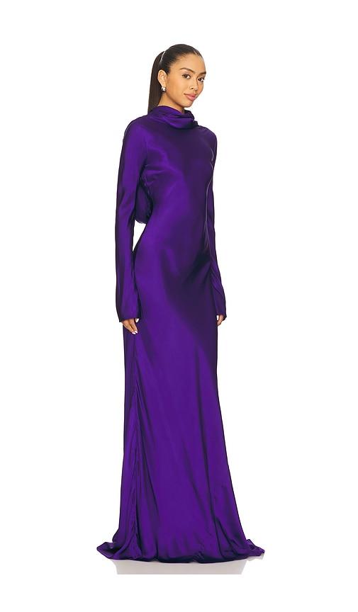 ALEJANDRA ALONSO ROJAS MAXI COWL BACK DRESS IN BLUE.
