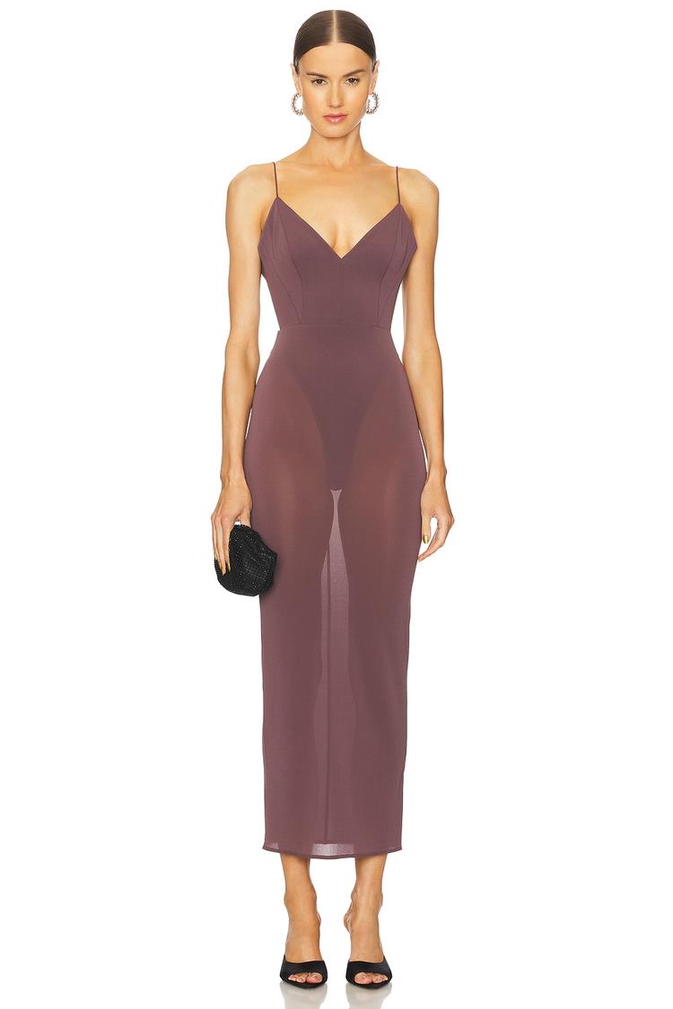 A sleek midi slip dress in a matte plum hue showcases a fitted silhouette with a sweetheart neckline and delicate spaghetti straps. Crafted from slinky jersey fabric with a boned bodice and attached brief lining, it features an elegant open back with a hidden zipper closure. This versatile piece is perfect for cocktail events, date nights, or stylish evenings out, combining modern sexy appeal with timeless elegance and comfort.