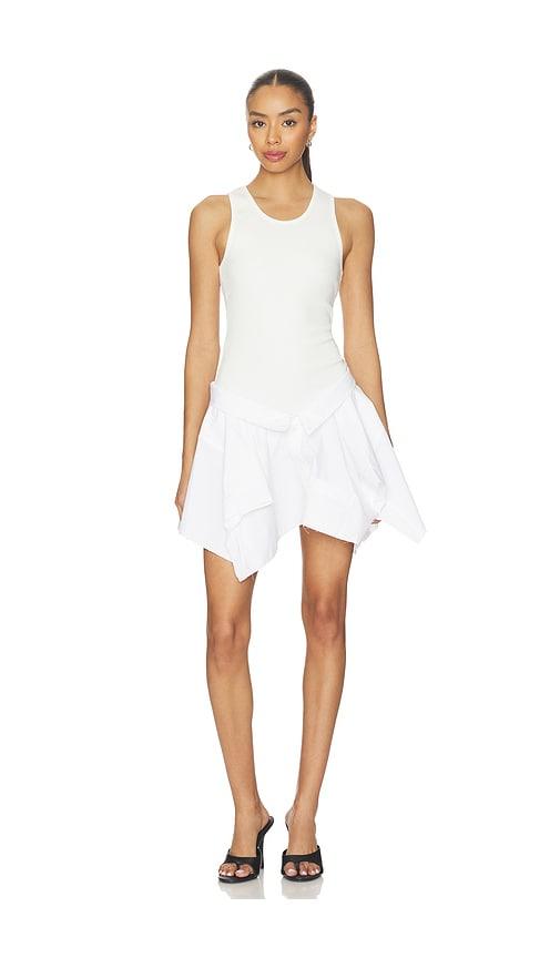 ALEXANDER WANG PRESTYLE COMBO DRESS WITH DENIM VEST IN WHITE,BLUE.