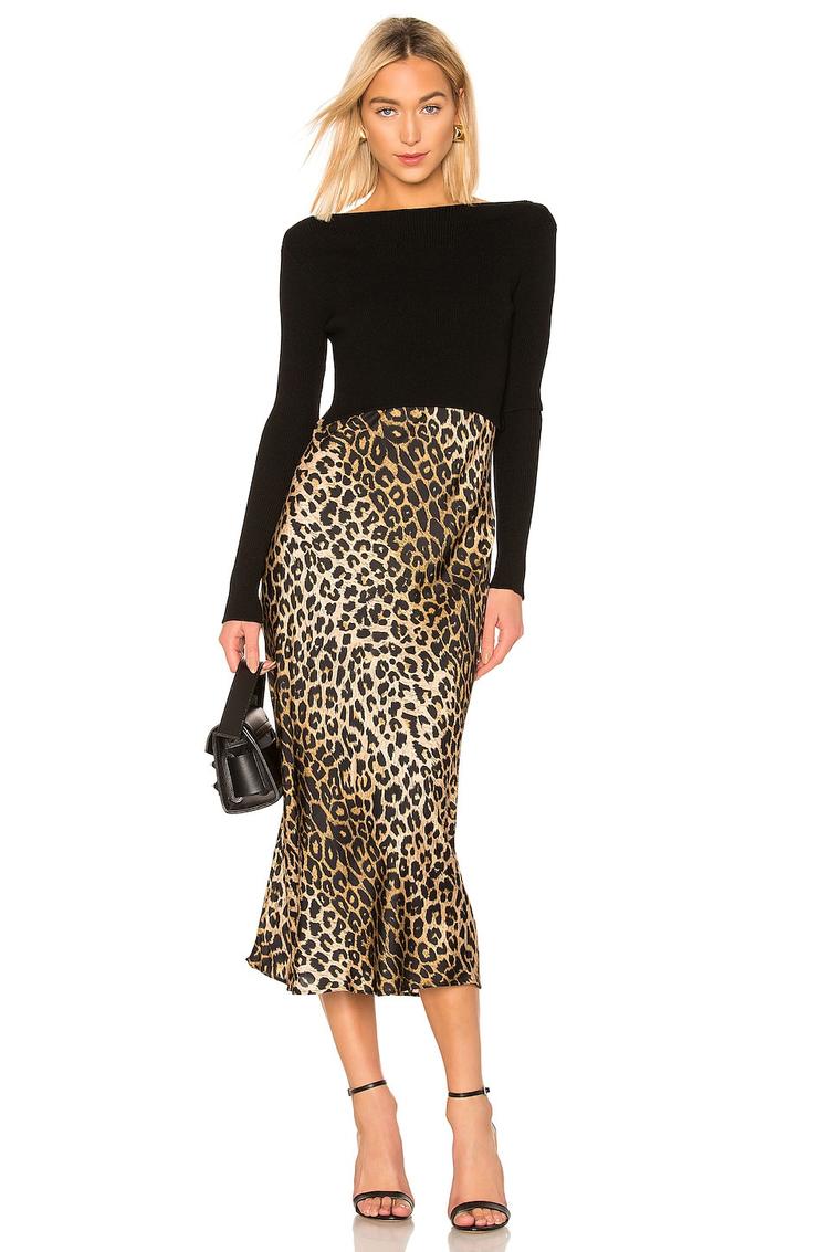 A sleek slip dress in a classic leopard print delivers a chic and modern silhouette with its slim fit and midi length hem. Crafted from a soft viscose blend, the dress features adjustable shoulder straps for a customizable fit and a flared hem for graceful movement. This versatile piece pairs perfectly with heels for a night out, cocktail events, or date nights, making it a stylish staple for multiple occasions. The matte brown and black animal pattern adds a bold yet sophisticated edge to your wardrobe.
