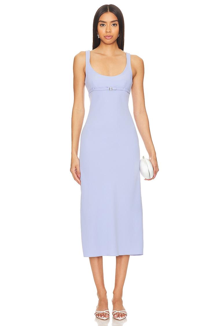 Soft matte crepe fabric and a slender slip dress silhouette define this English Lavender midi, featuring a flattering U-neck and sleeveless design. The adjustable silver buckle strap at the bust adds a subtle yet sophisticated detail, while the invisible back zipper ensures a smooth fit. Ideal for spring and summer occasions, it effortlessly transitions from daytime brunches to elegant cocktail evenings and romantic date nights. The clean hemline and minimalist style complete its timeless, graceful appeal.