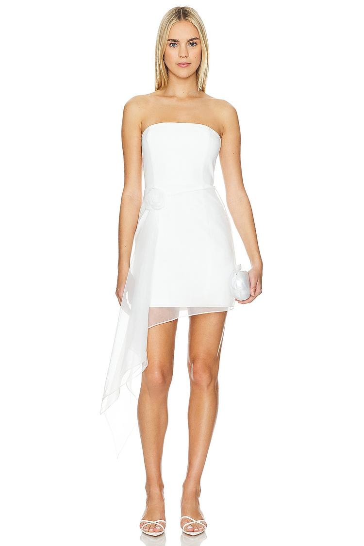 Soft crepe fabric meets lightweight organza rosette detailing on this mini sheath dress, creating a chic and modern silhouette. The strapless straight neckline and concealed back zipper enhance its fitted shape, while the asymmetric hemline adds a touch of elegance. Perfect for spring and summer cocktail parties, night outs, or romantic date nights, this dress balances contemporary style with graceful design details. Fully lined for comfort, it embodies sophisticated simplicity with subtle ruffles and applique accents on the side.