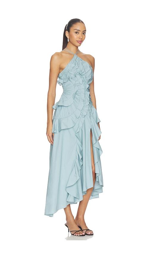 AMUR OTTAVIA RUFFLE DRESS IN SLATE.