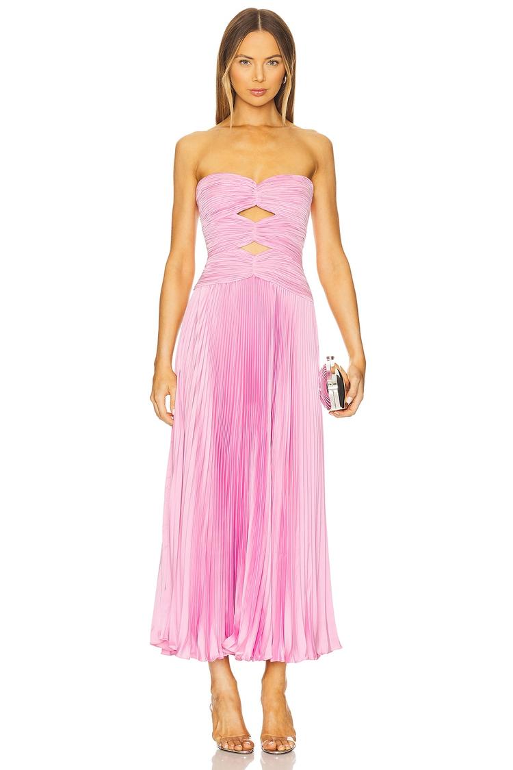 pink pleated dress