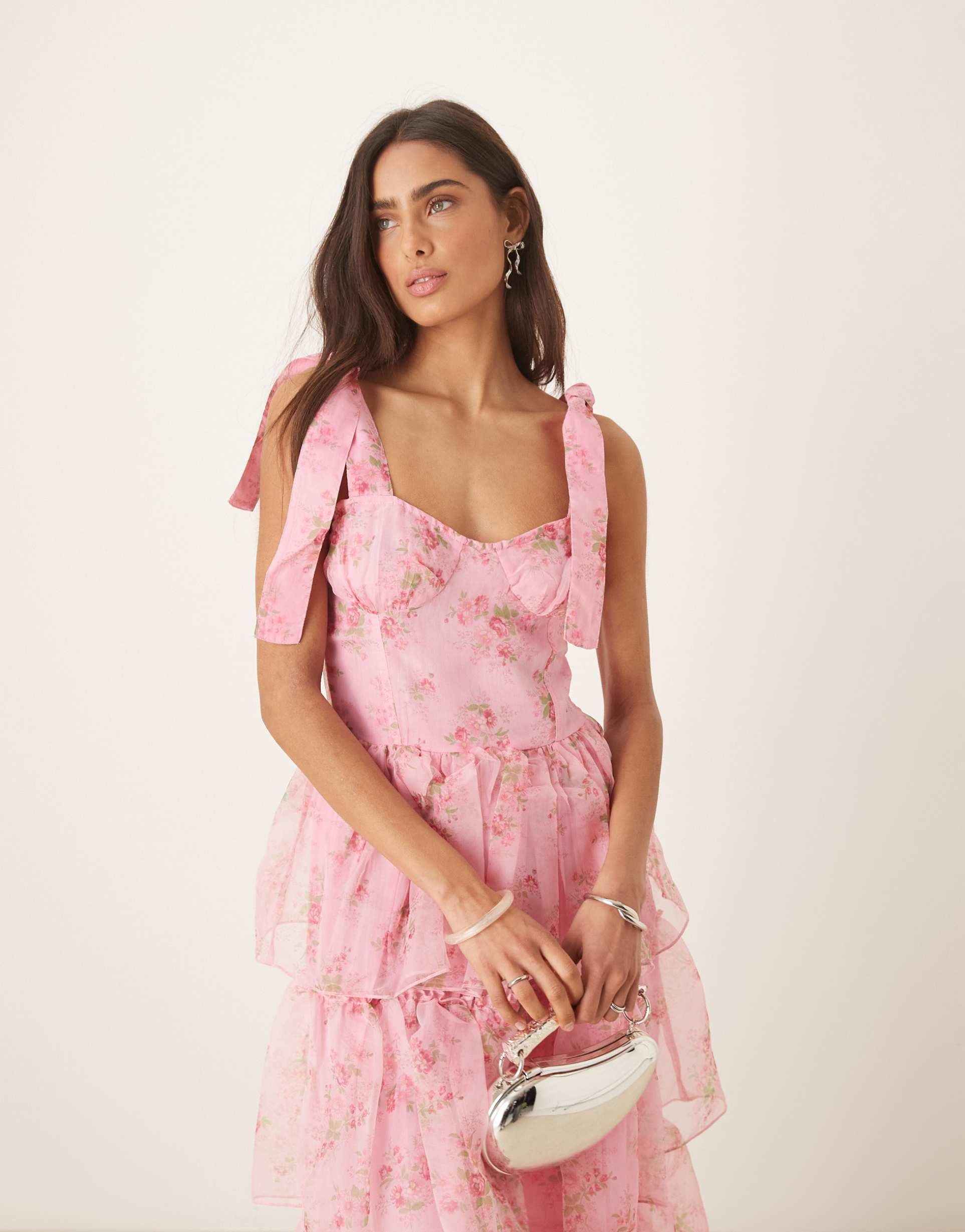 AMY JANE LONDON FLORENCE TIE SHOULDER TIERED MAXI DRESS IN PINK FLORAL