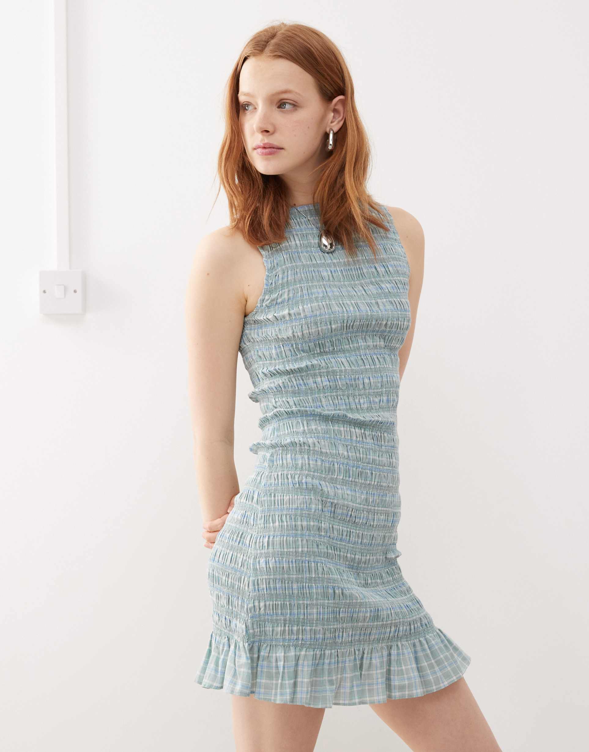 mint check mini dress