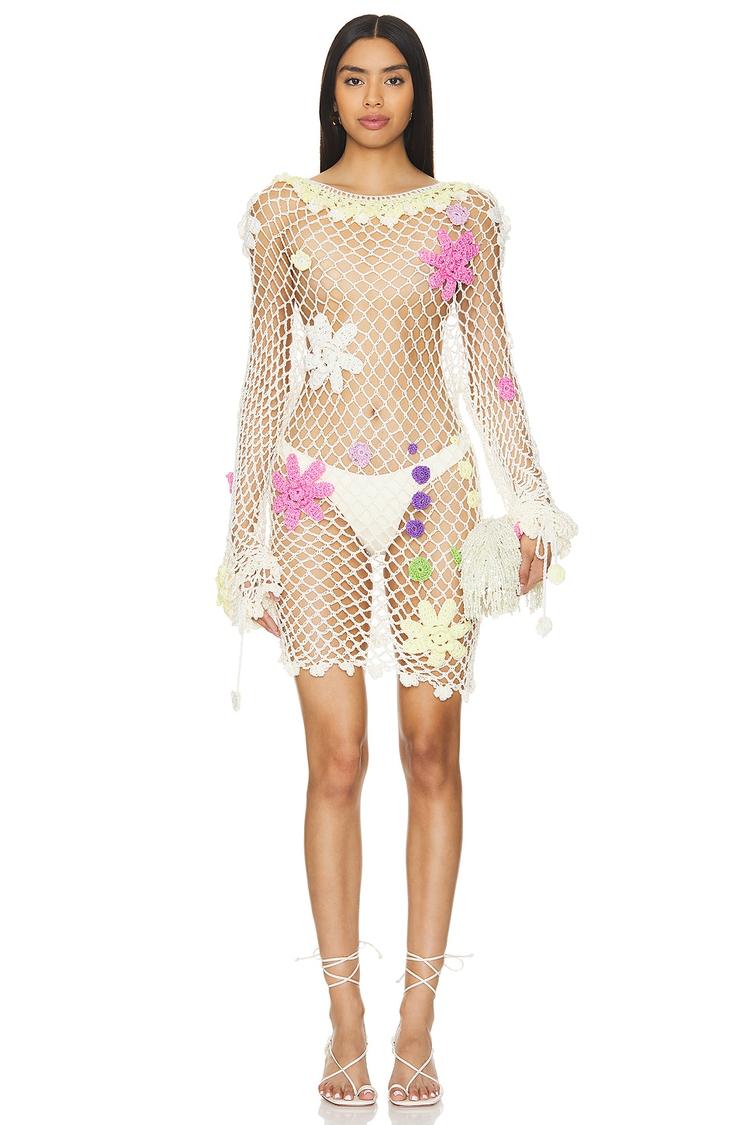 Elevate your beach style with the Malva Handmade Crochet Top, a must-have for your summer wardrobe! This stunning piece features a delicate, open crochet design in a fresh off-white base that beautifully showcases floral accents in playful pinks and greens. Crafted with a blend of soft cotton and viscose, it ensures comfort and breathability. The scoop neck and long sleeves offer a relaxed yet chic silhouette, perfect for layering over your favorite swimwear. Make a splash this season at beach parties or tropical getaways with this vibrant and trendy tunic!