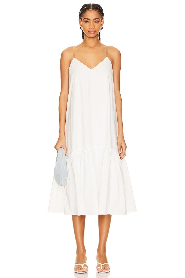 Soft cotton poplin and a flowing swing silhouette create an effortlessly chic look with this midi dress. Featuring a V-neckline and delicate spaghetti straps, it offers a breezy sleeveless style perfect for warm days. The ruffled hem adds subtle volume and movement, while side seam pockets blend practicality with design. Fully lined for comfort, this lightweight dress suits spring and summer occasions like casual brunches, vacation outings, or everyday wear with ease and grace.