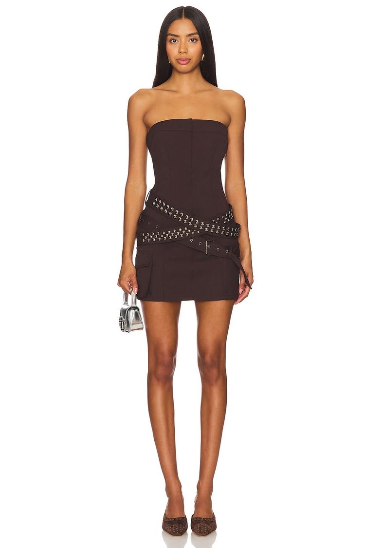 A sleek strapless mini dress with a figure-hugging bodycon fit showcases modern chic style. Crafted from a polyester blend with a matte black finish, this Italian-made piece features metallic silver studs artfully placed across the front and back skirt for edgy detailing. The clean hemline complements the tight silhouette, while the hidden side zipper ensures a smooth finish. Perfect for night outs, cocktail parties, or date nights, this dress offers a bold, sexy vibe that stands out effortlessly across seasons.