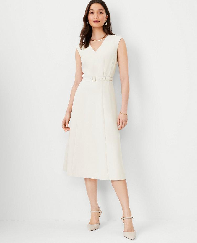 THE BELTED V-NECK MIDI DRESS IN FLUID CREPE