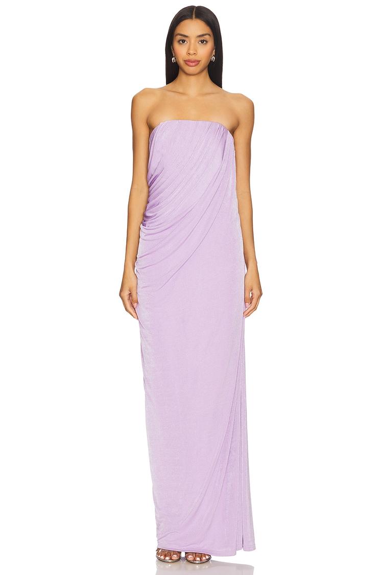 Soft lavender silk cascades gracefully in this strapless column dress featuring elegant draping at the front and back. The maxi length and slim fit create a refined silhouette perfect for formal evenings, cocktail parties, or sophisticated events. Its minimalist design emphasizes clean lines and understated glamour, making it a versatile choice for all-season wear. Slip on this timeless piece to embody quiet luxury and effortless elegance.