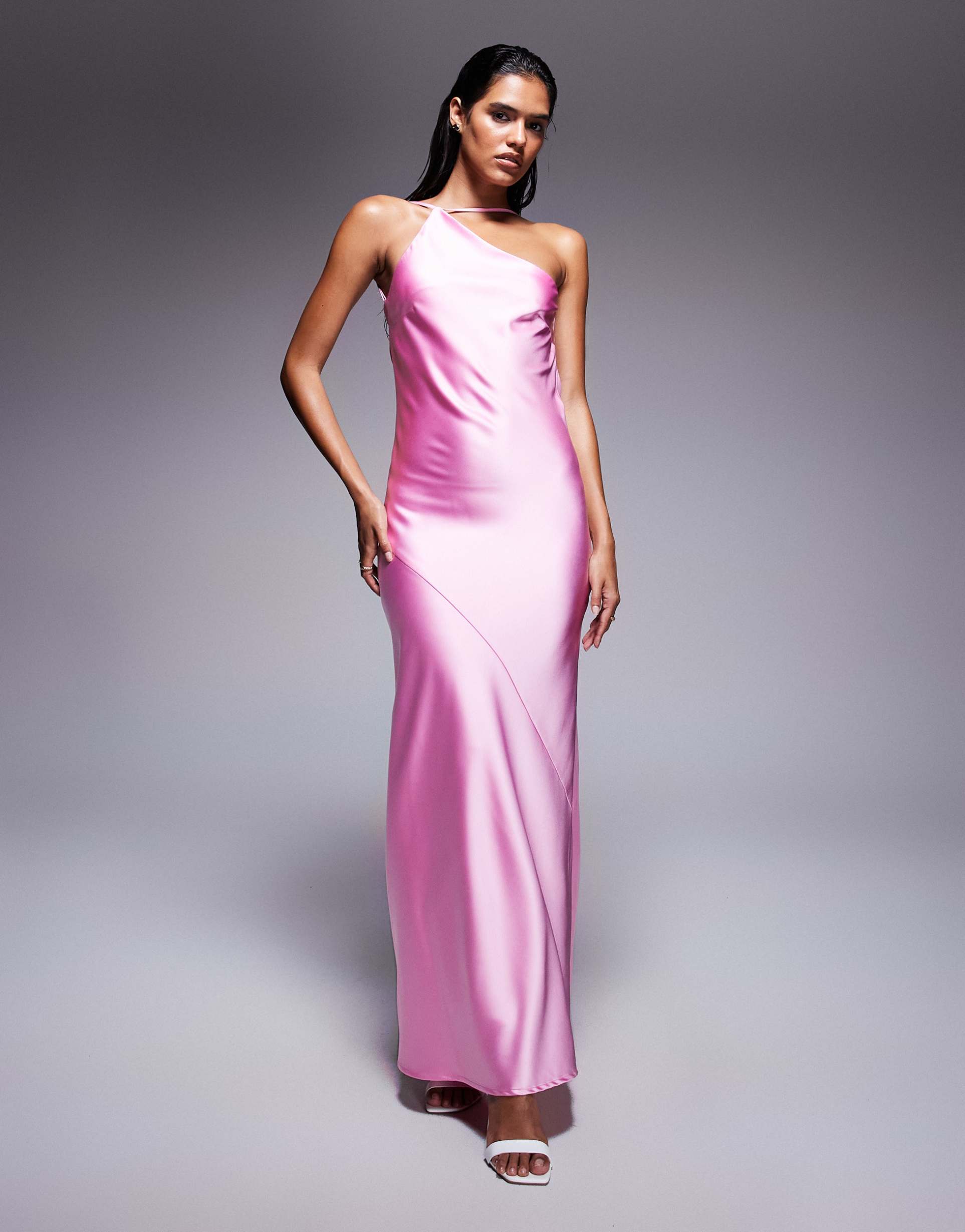 ARIA COVE SATIN ONE-SHOULDER OPEN BACK MAXI DRESS IN PINK