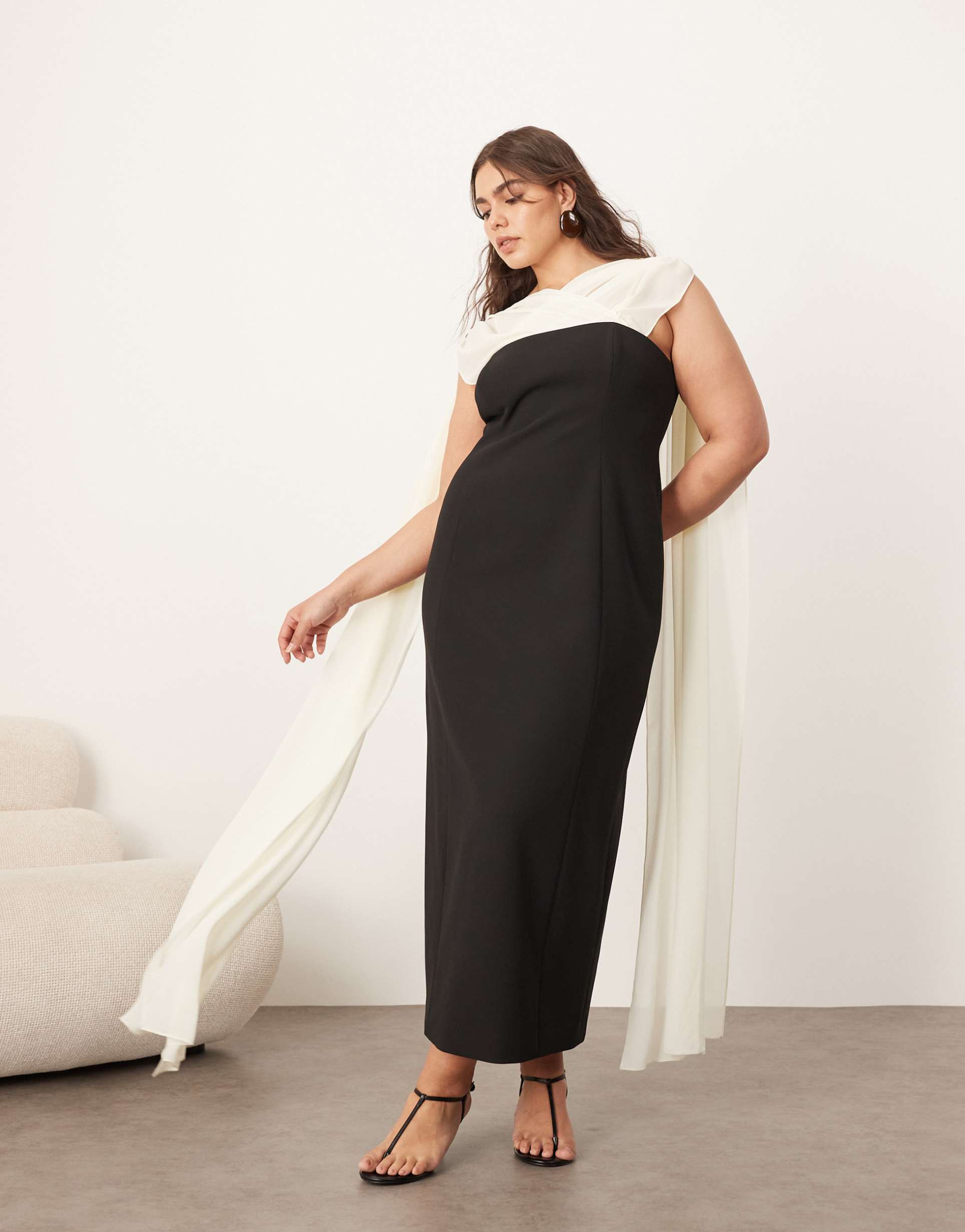 ARRANGE CURVE STRUCTURED MAXI DRESS WITH CHIFFON DRAPE IN MONO