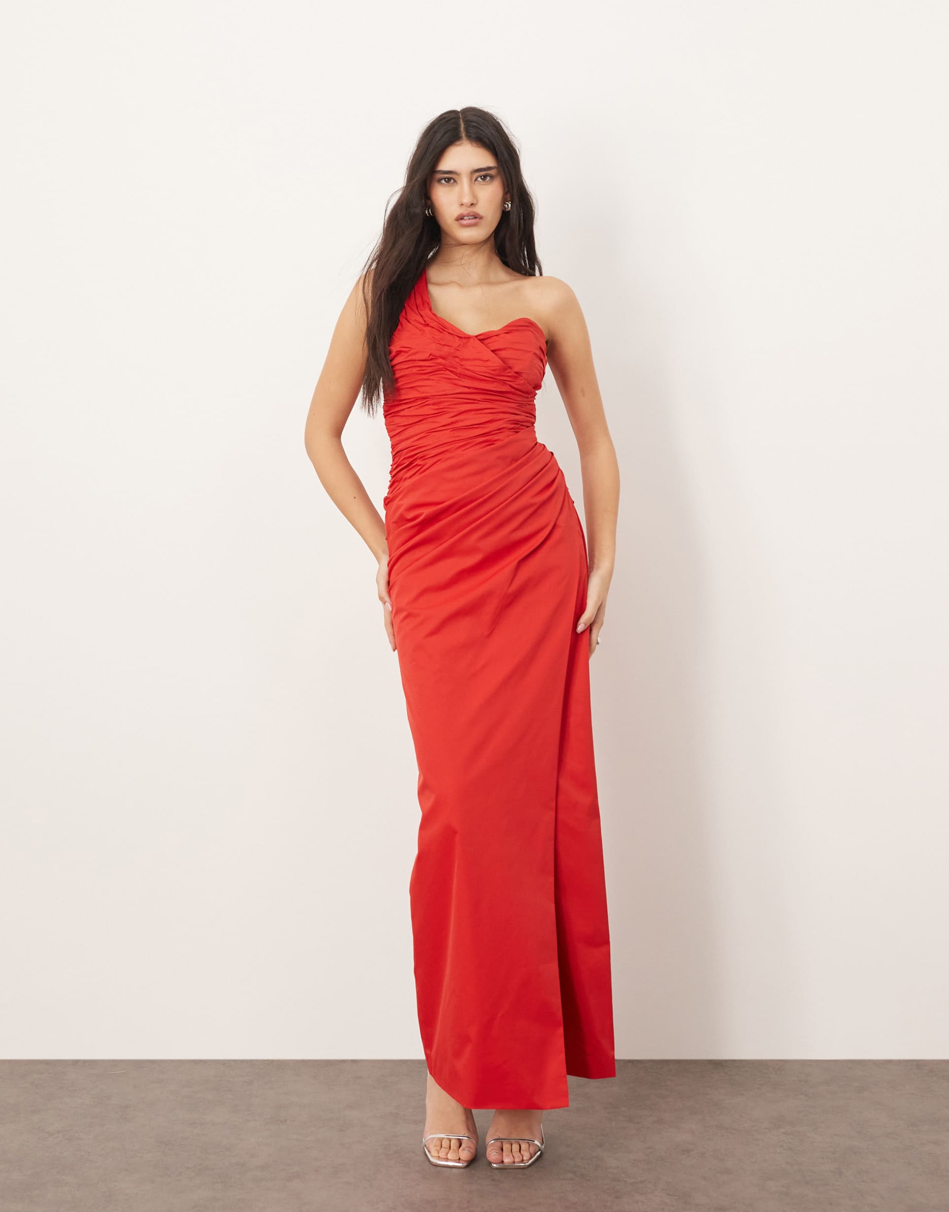 red one shoulder maxi dress
