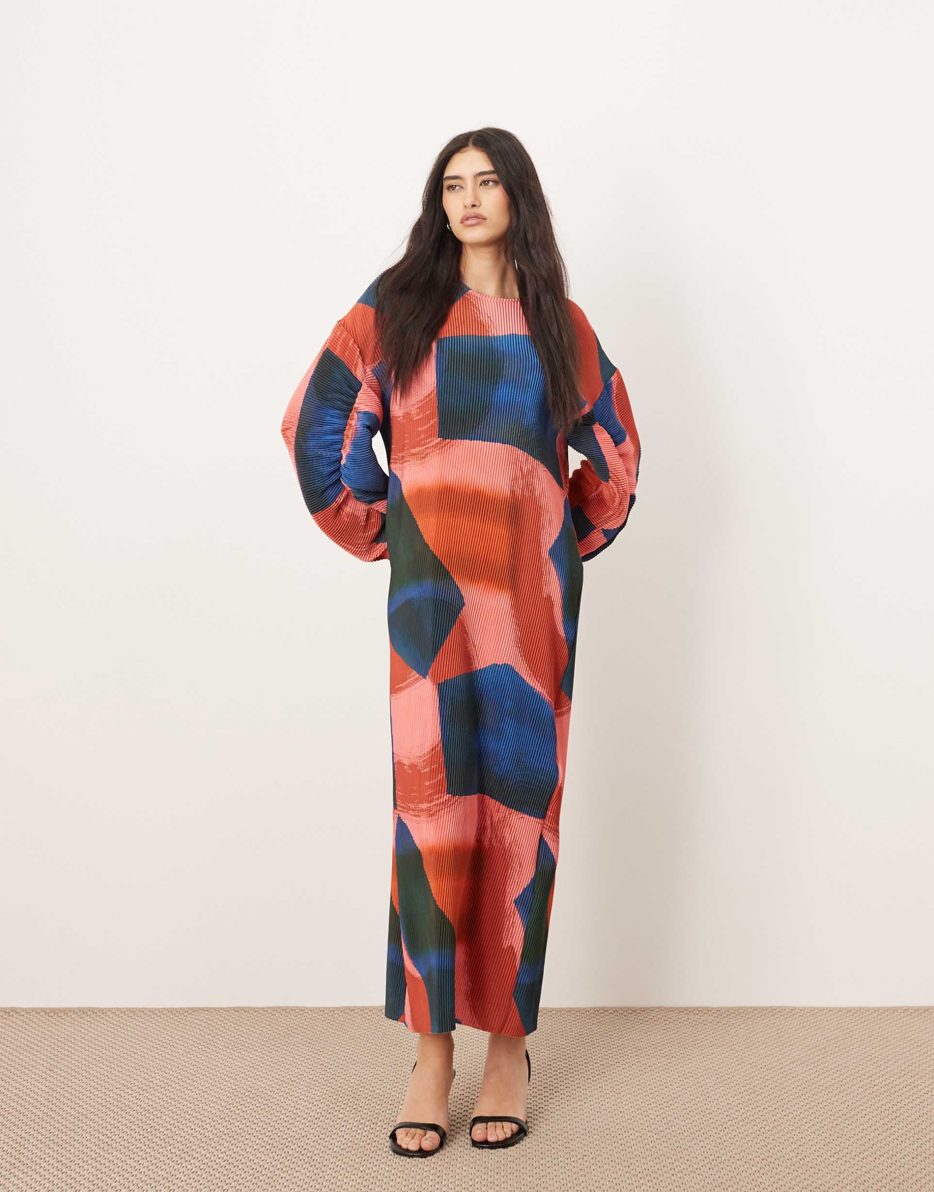 ARRANGE PLISSE LARGE SLEEVE MAXI DRESS IN PRINT