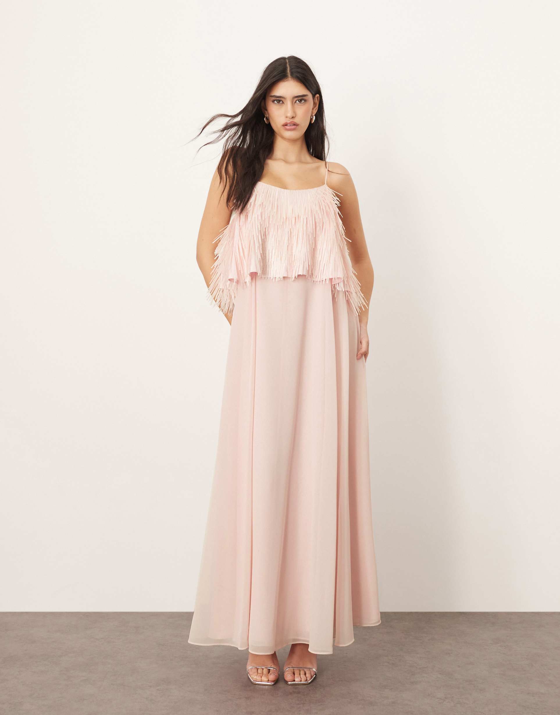 ARRANGE SHARD SEQUIN LAYERED TRAPEZE CAMI MAXI DRESS IN LIGHT PINK
