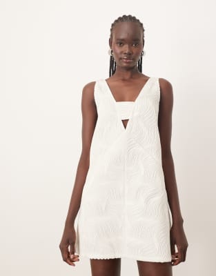 ARRANGE WAVE TEXTURED PLUNGE MINI DRESS IN WHITE
