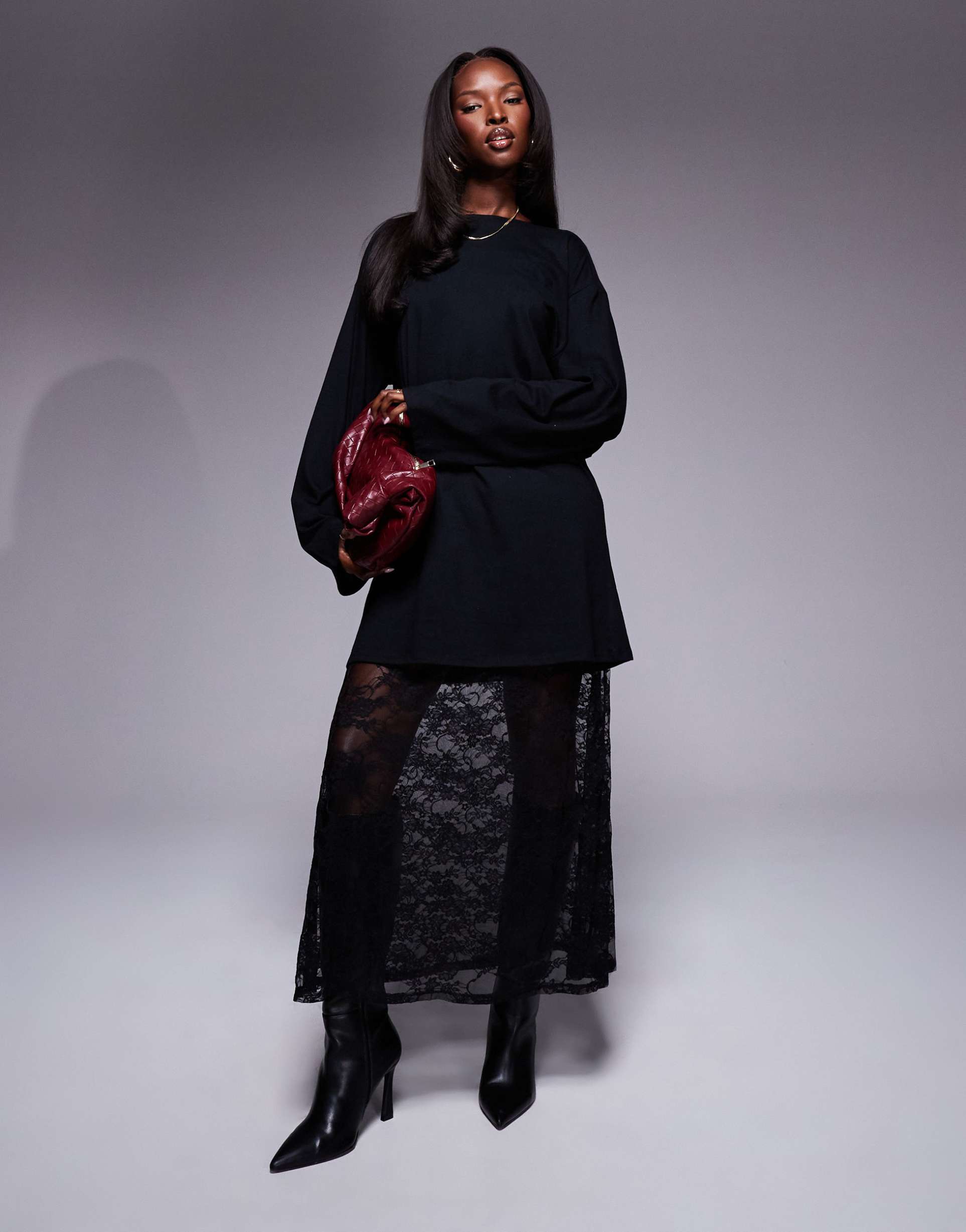 ASOS DESIGN 2 IN 1 SUPERSOFT SWEATER WITH LACE MIDI SKIRT