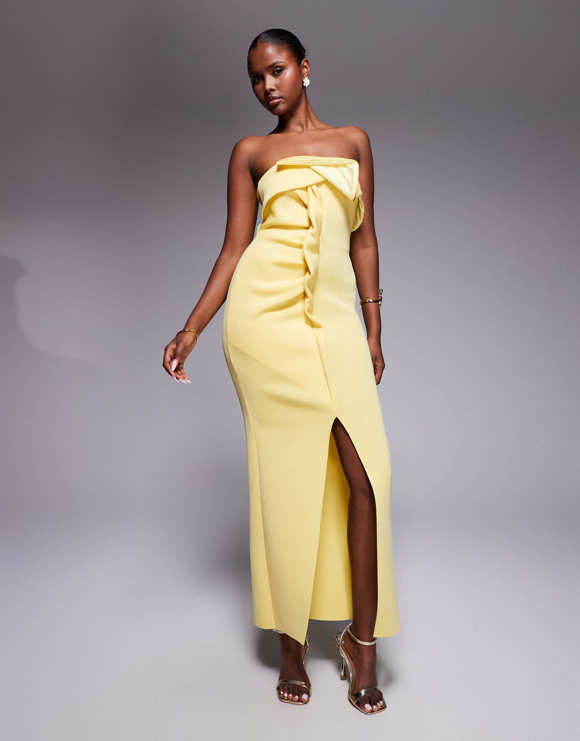 ASOS DESIGN BANDEAU MIDI DRESS WITH TWISTED FRONT DETAILING SCUBA MIDI DRESS IN BUTTERMILK