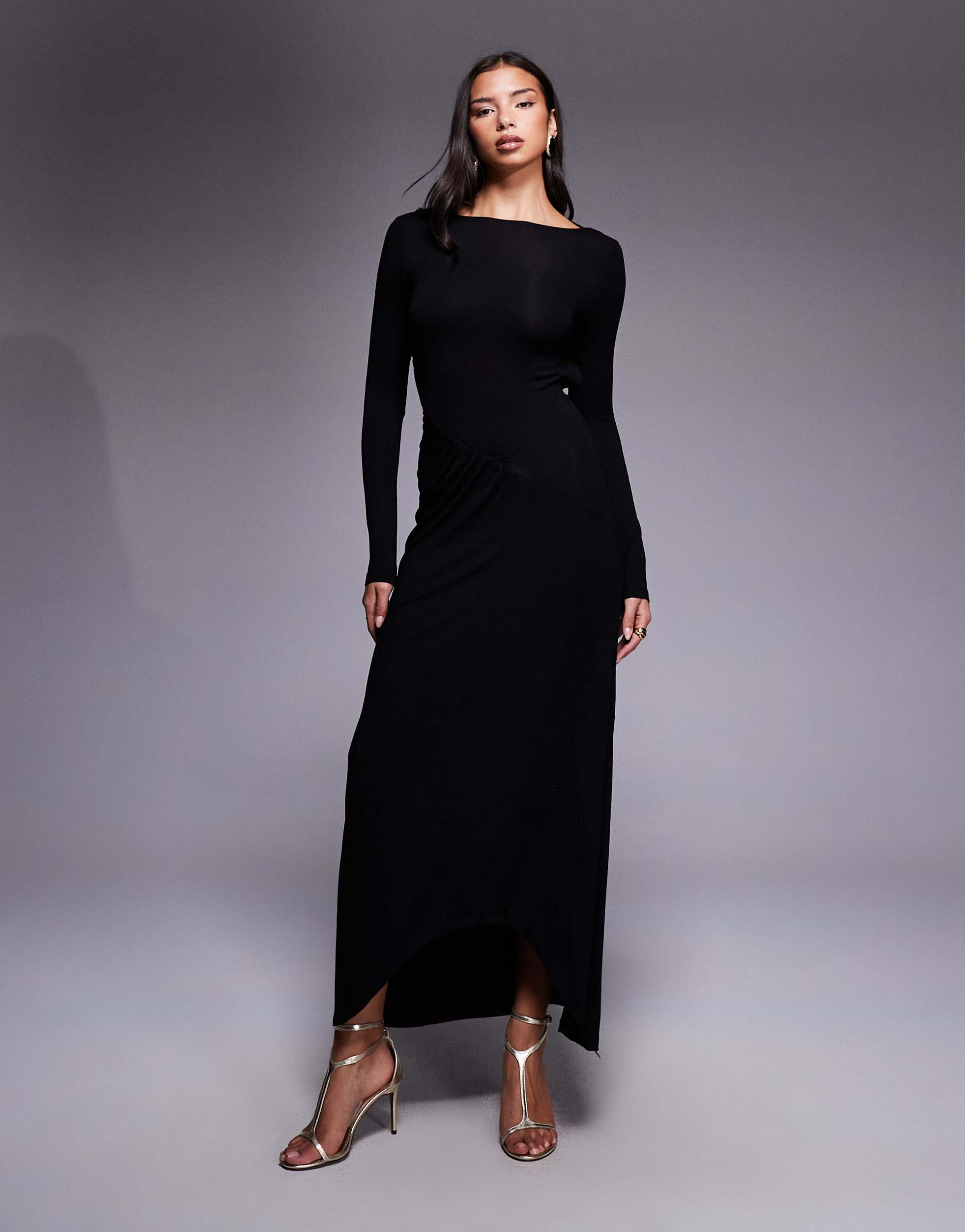 ASOS DESIGN BOAT NECK LONG SLEEVE MAXI DRESS IN BLACK