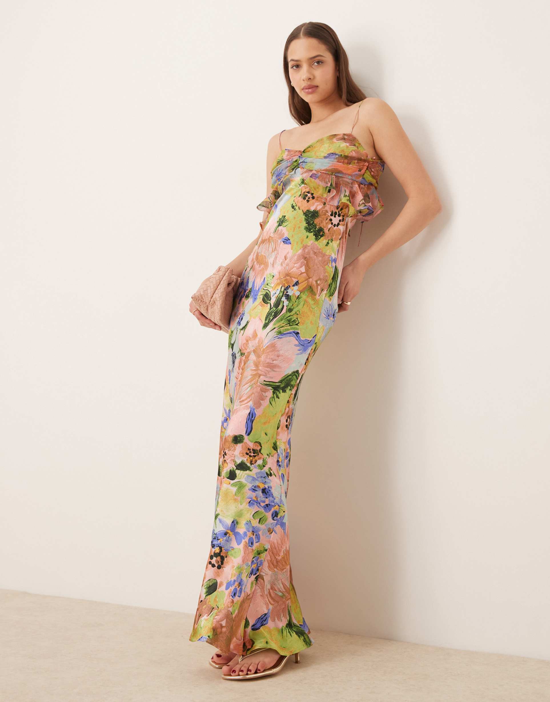 ASOS DESIGN CHIFFON BUST SATIN CAMI MAXI DRESS IN FLORAL PRINT