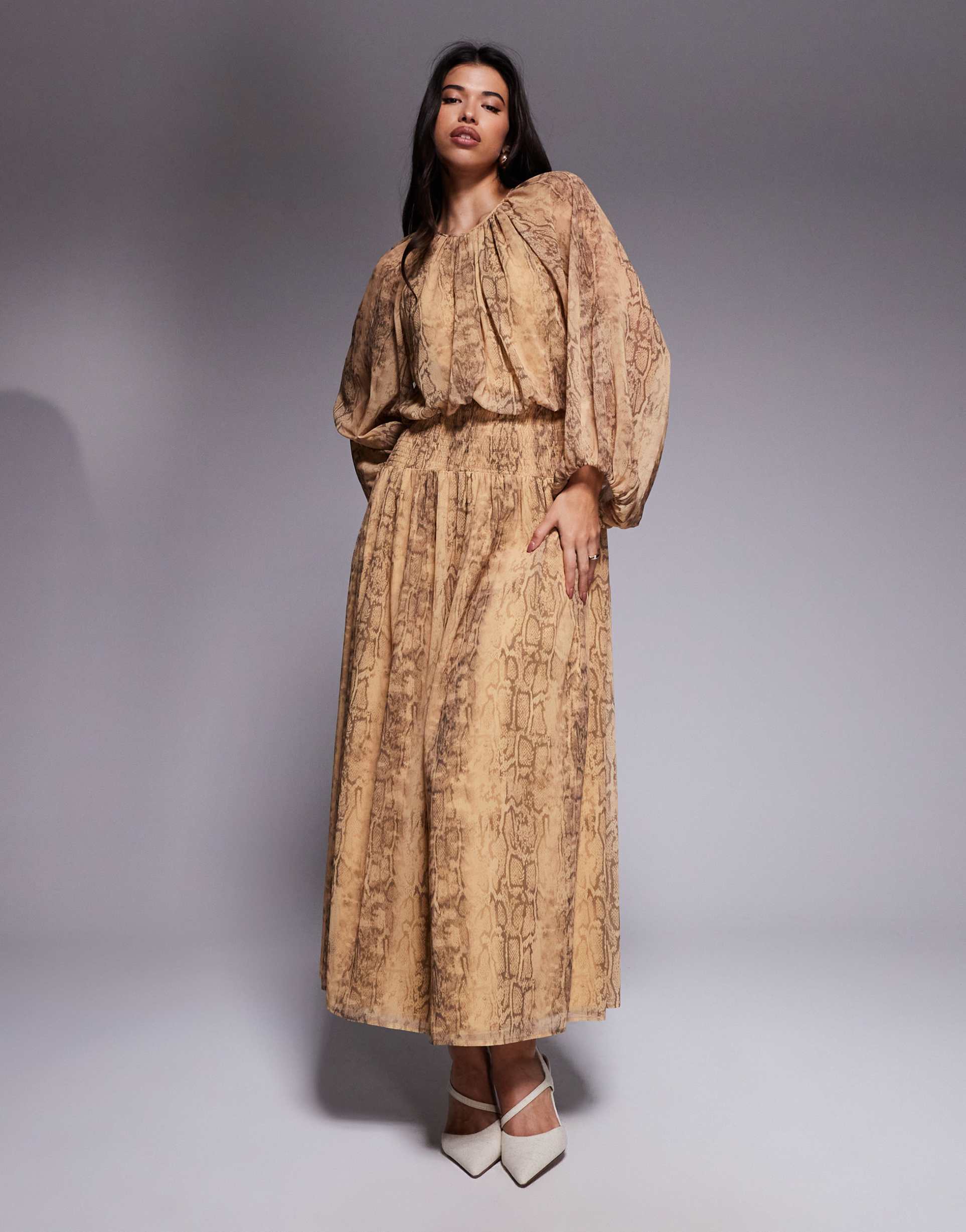 ASOS DESIGN CHIFFON SHIRRED WAIST MAXI DRESS IN SNAKE PRINT