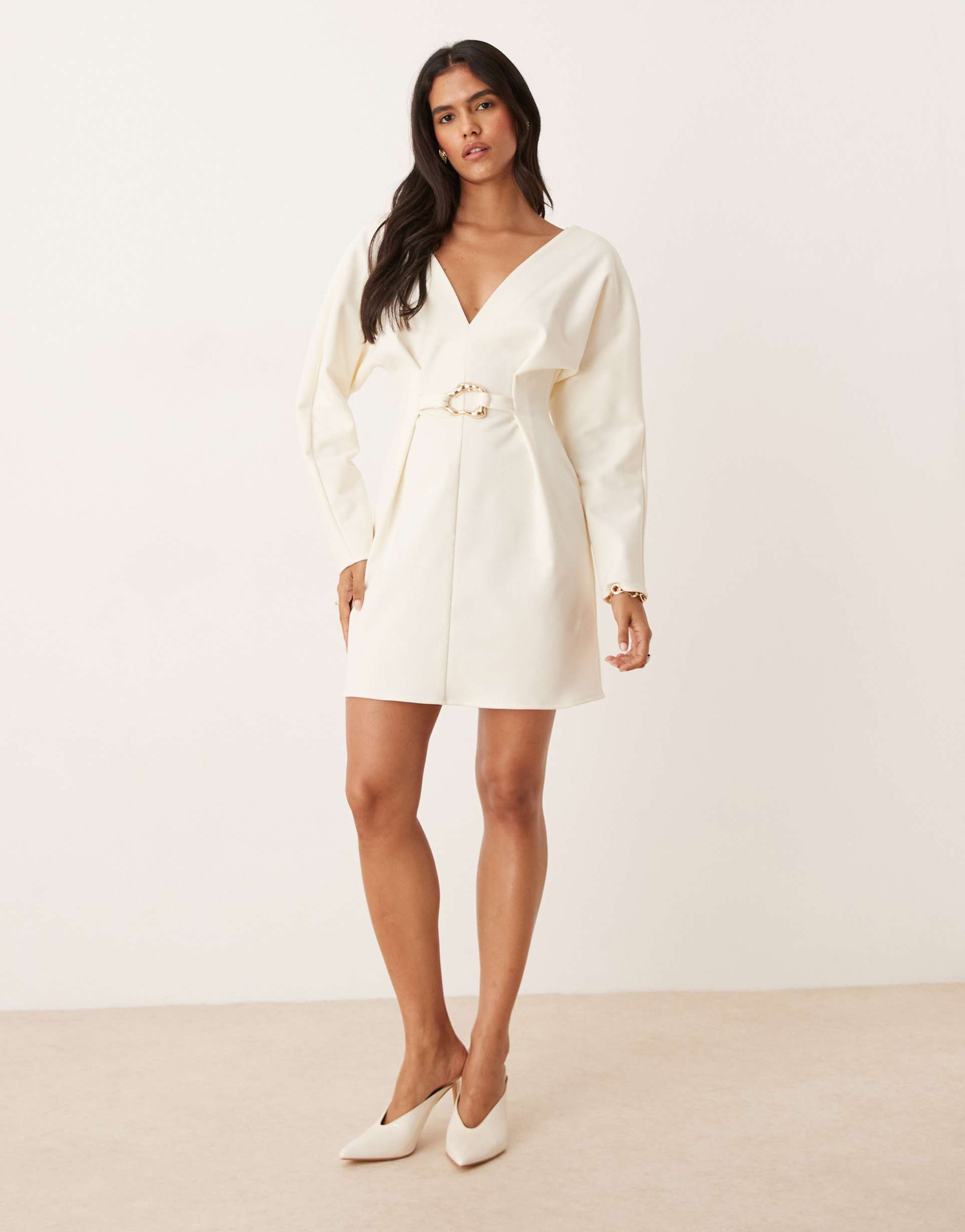 ASOS DESIGN COCOON SLEEVE MINI DRESS WITH HARDWARE IN STONE