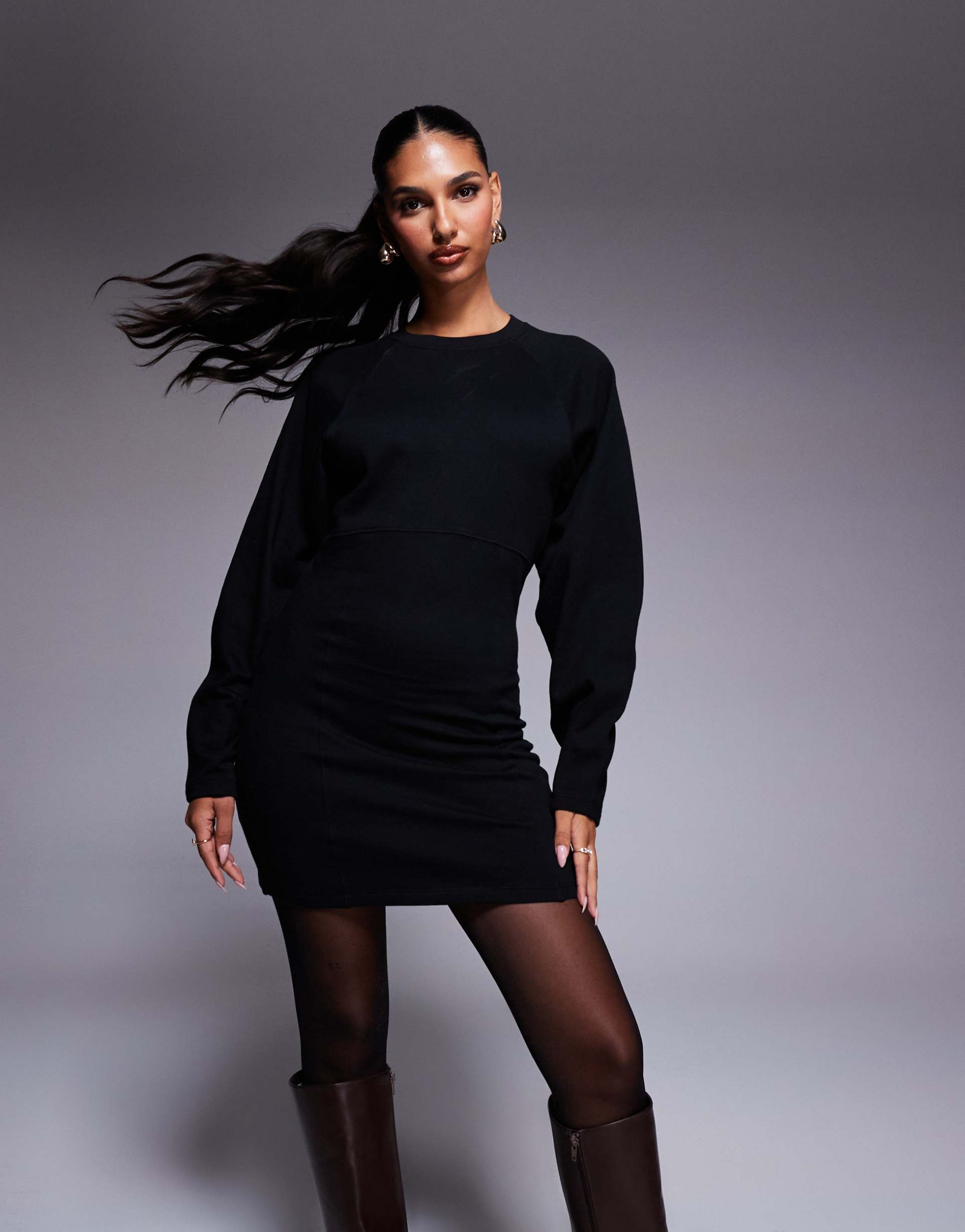ASOS DESIGN COCOON SLEEVE SEAM DETAIL MINI SWEATSHIRT DRESS IN BLACK