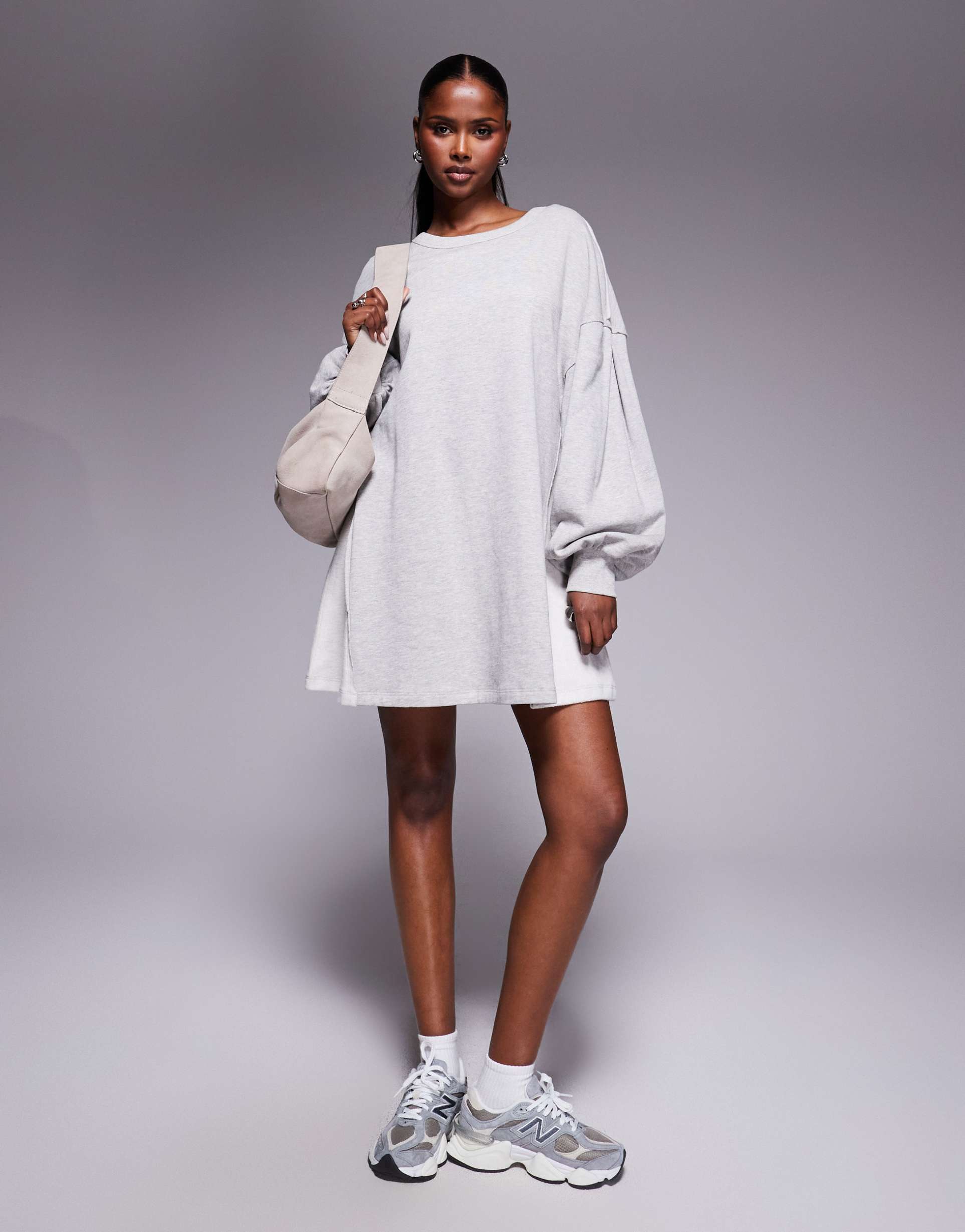 ASOS DESIGN COTTON TRAPEZE SWEAT MINI DRESS IN GRAY HEATHER
